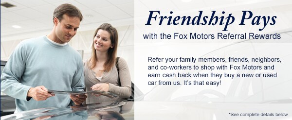 Having friends pays off big time! Refer your family members, friends, neighbors, and co-workers to shop with Fox Motors and earn $100 referral bonus check when they buy a new or used car from us. Contact Fox Ann Arbor Acura and let us know you sent them!
