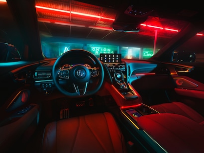 Step inside the new Acura RDX and be greeted by an inviting, premium space. The expertly crafted cabin features high-quality, soft-touch materials and attractive design elements throughout. Leatherette-trimmed upholstery comes standard, with perforated Milano premium leather available for an even more upscale look and feel. The Acura RDX A-Spec and Acura RDX Advance trims now come standard with full leather upholstery and enhanced ambient lighting.